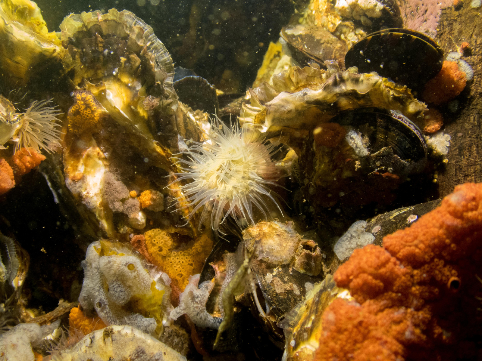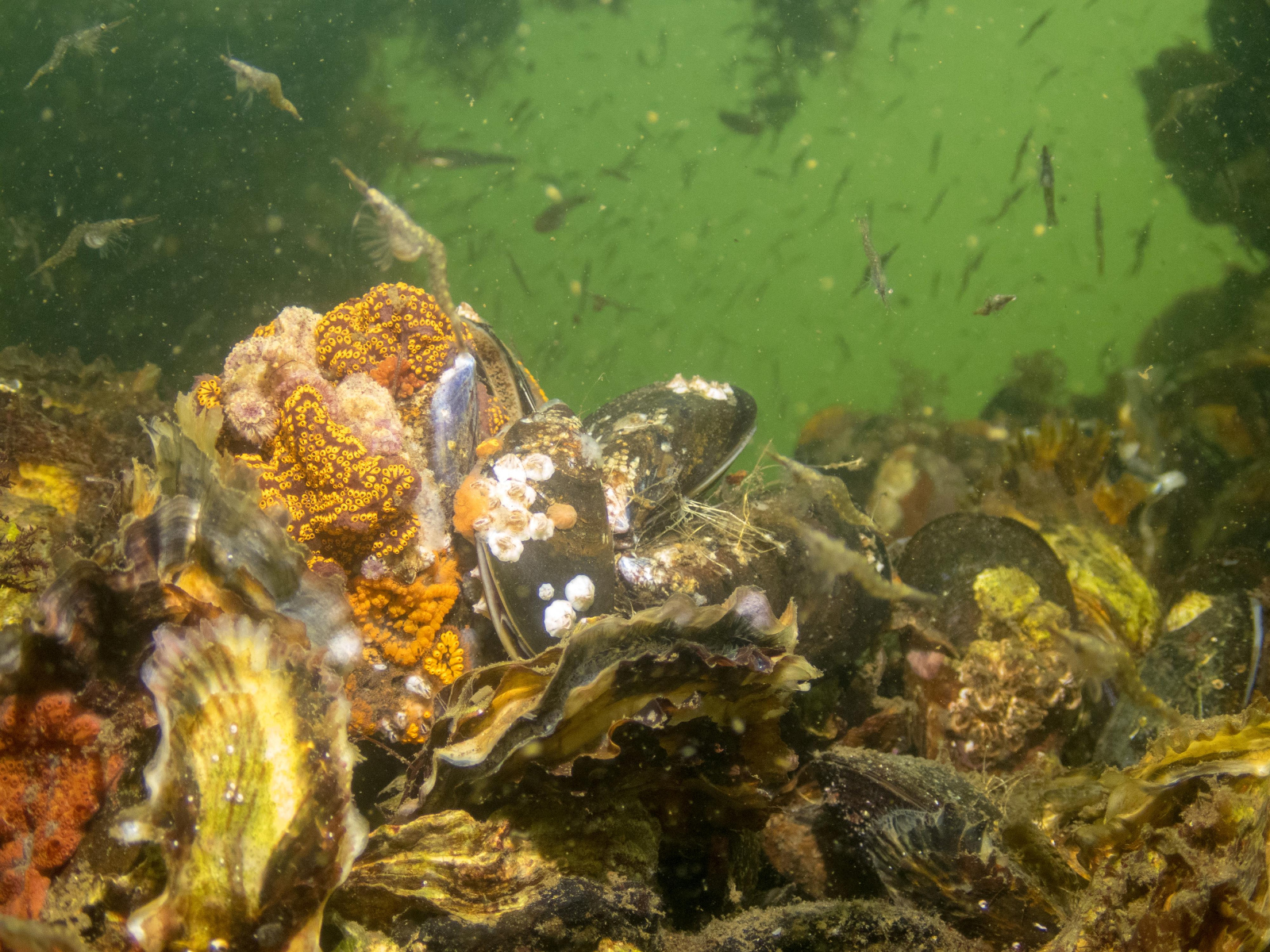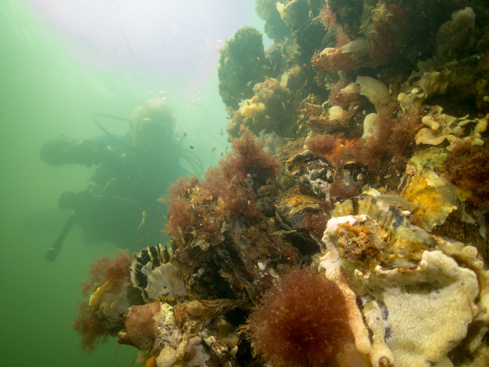 In de Oosterschelde is het tij nog altijd actief. Vandaar dat het duiken in de Oosterschelde afhankelijk is van de stroming. De stroming is afhankelijk van het tij (maanstand) en bij veel wind ook afhankelijk van de windrichting. Er zijn veel overeenkomsten met het stilstaande water van het Grevenlingenmeer, maar door de dagelijkse verversing van het zoute water is er ook leven op een grotere diepte en komen er andere soorten dieren en planten voor. De aanwezigheid van de diverse soorten is sterk afhankelijk van de seizoenen, maar kan ook per jaar sterk verschillen.